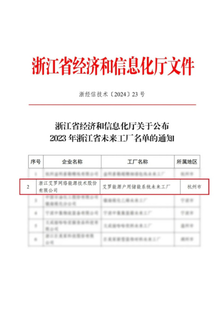 “九游会能源户用储能系统未来工厂”上榜浙江省未来工厂